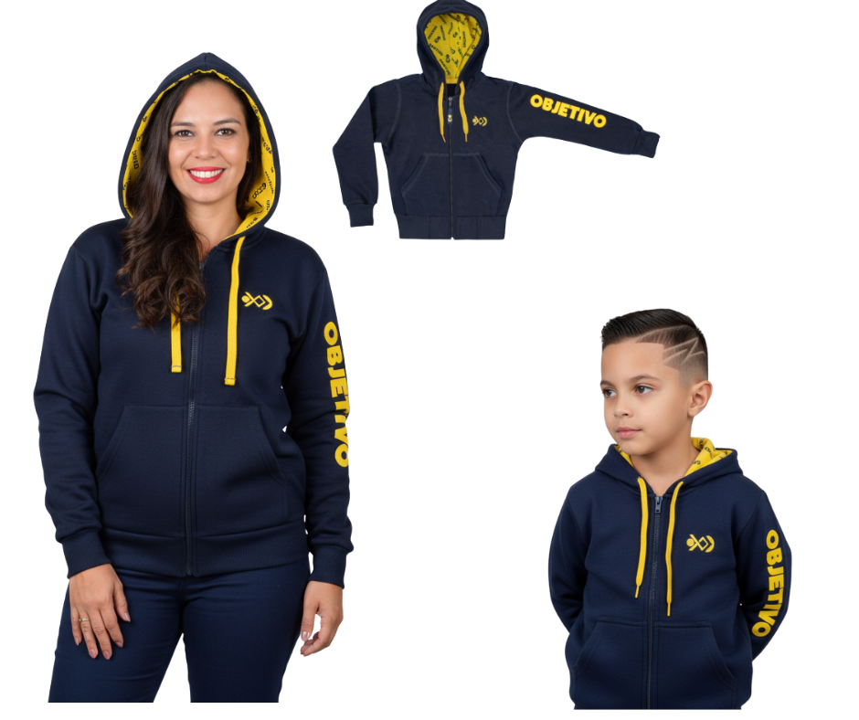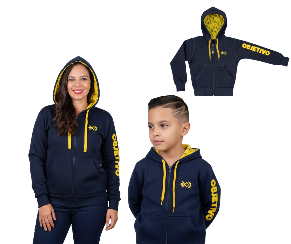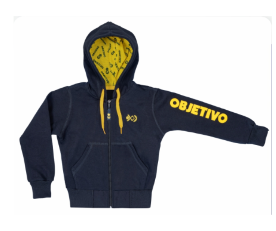 Blusão Colégio Objetivo, confeccionado em moletom de alta qualidade, com capuz e zíper frontal completo. Ideal para manter os alunos aquecidos nos dias frios, com conforto, durabilidade e estilo para o uso diário escolar.